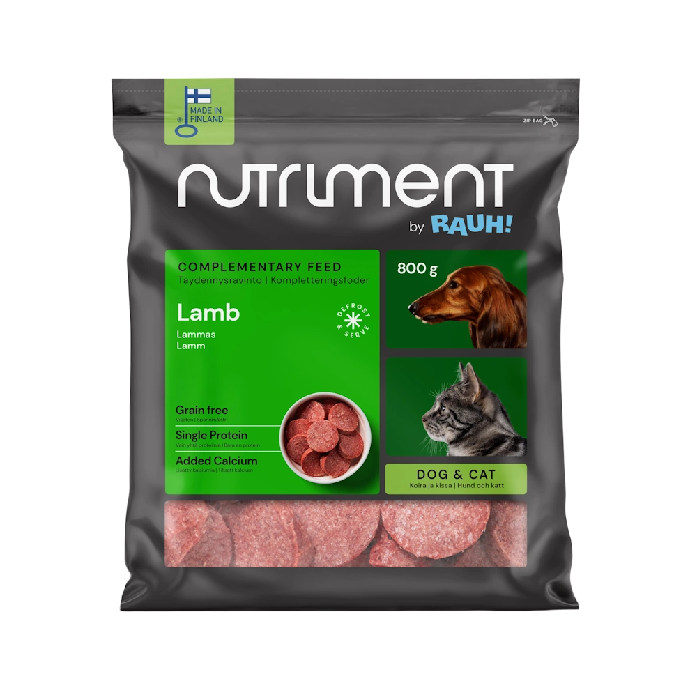 Nutriment by RAUH! Lammas tasakaalustamata toortoit koertele ja kassidele 800g
